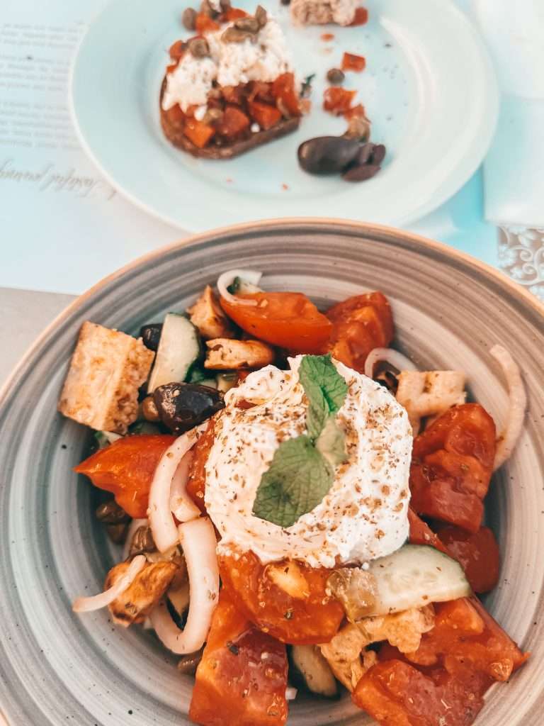 Let’s talk food because no trip to Greece is complete without indulging in the local cuisine. One of my absolute favorites is the classic Greek salad, and Paros does it better than anywhere else. The fresh, juicy tomatoes, crisp cucumbers, tangy olives, and creamy whipped feta are heaven in a bowl. Trust me, whipped feta is an absolute game-changer. There’s just something about the simplicity and freshness of the ingredients that makes every meal feel special.