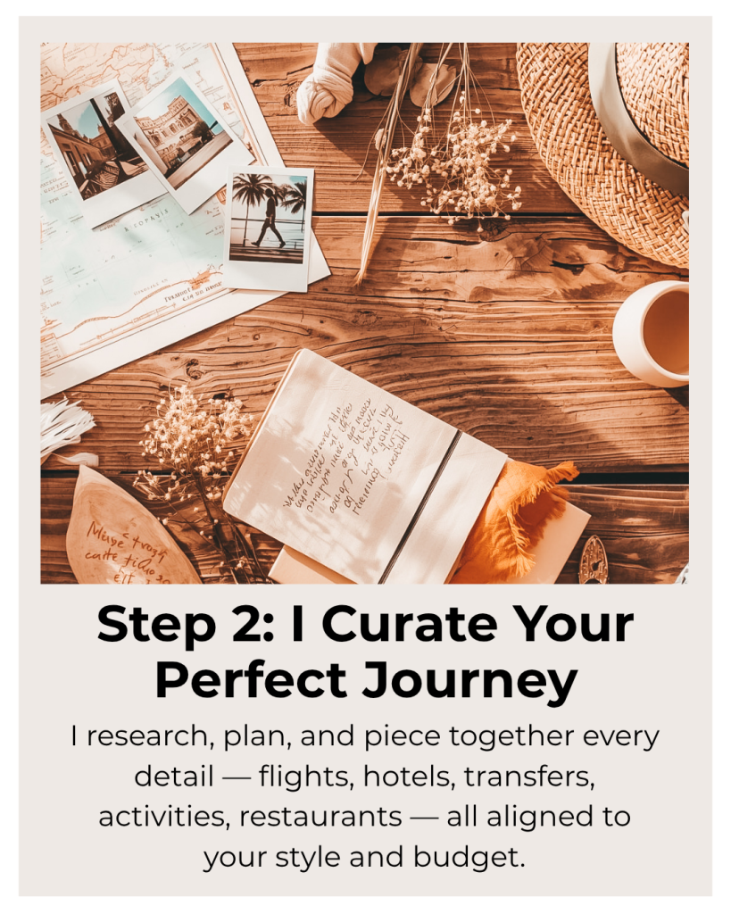 With Seeds of Travel, I create bespoke itineraries that take away the stress and leave only the magic. From the moment you reach out to the moment you return home, every detail is thoughtfully designed around you — your tastes, your pace, your dreams.